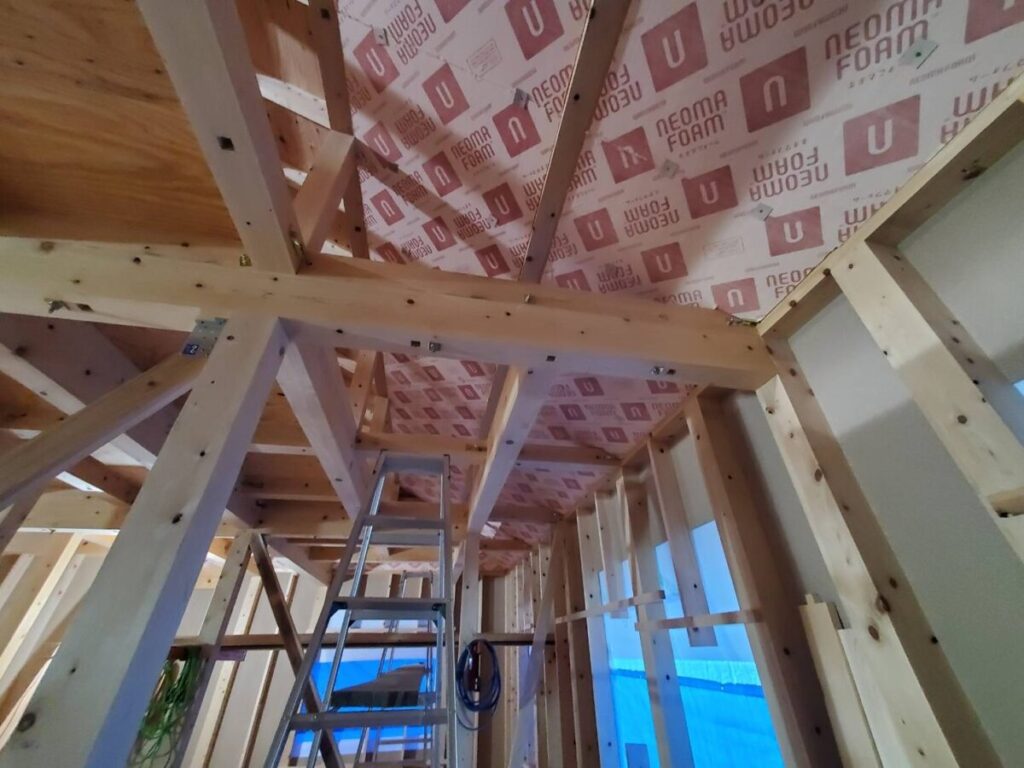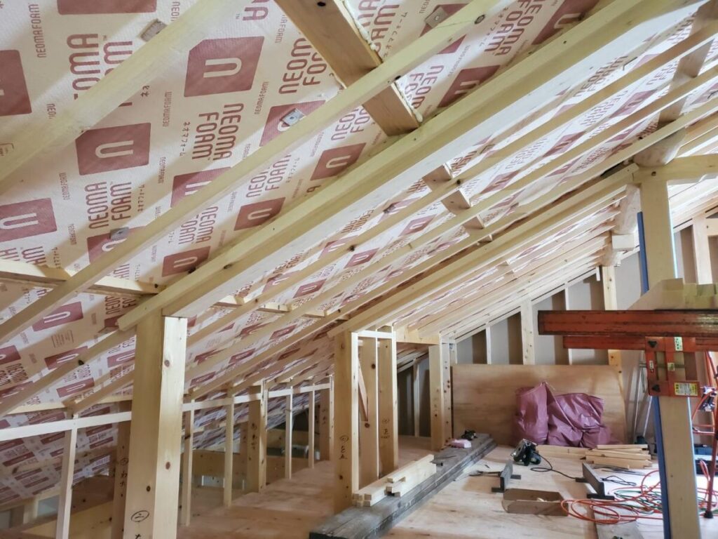 天井の断熱には、高性能フェノールフォーム断熱材「ネオマホーム」を採用。