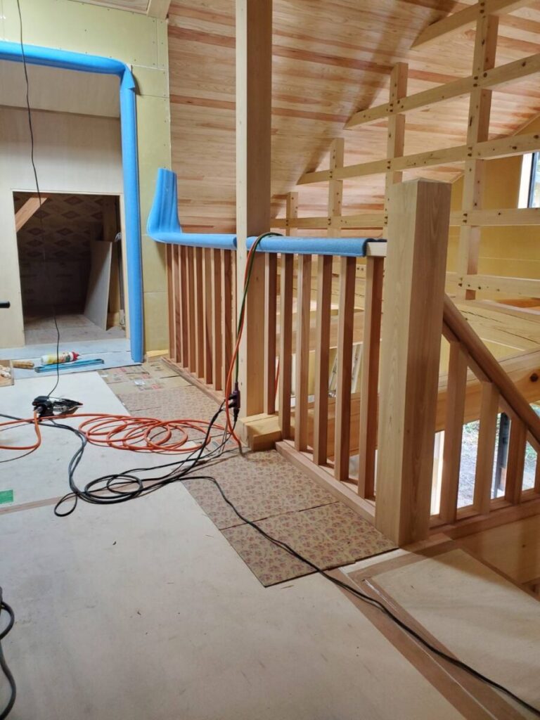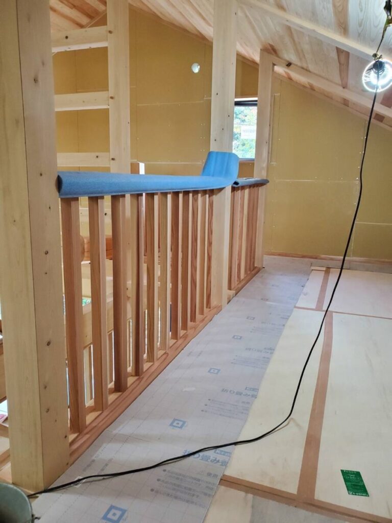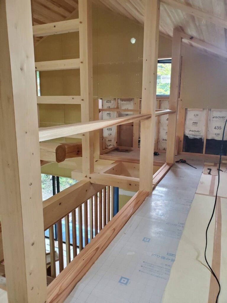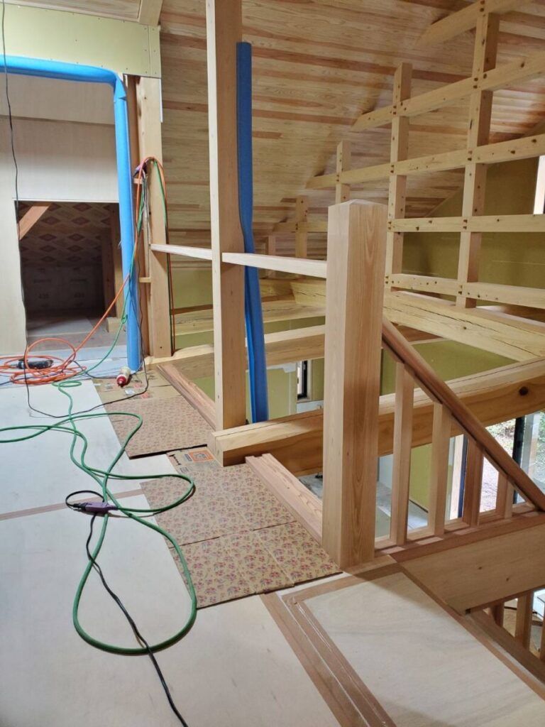 手摺に使用する材は、現場で一本一本丁寧に加工したものを現場で組んでいきます。