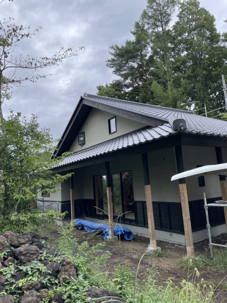 外部の足場が外れると、落ち着いた和の趣を感じる外観に。