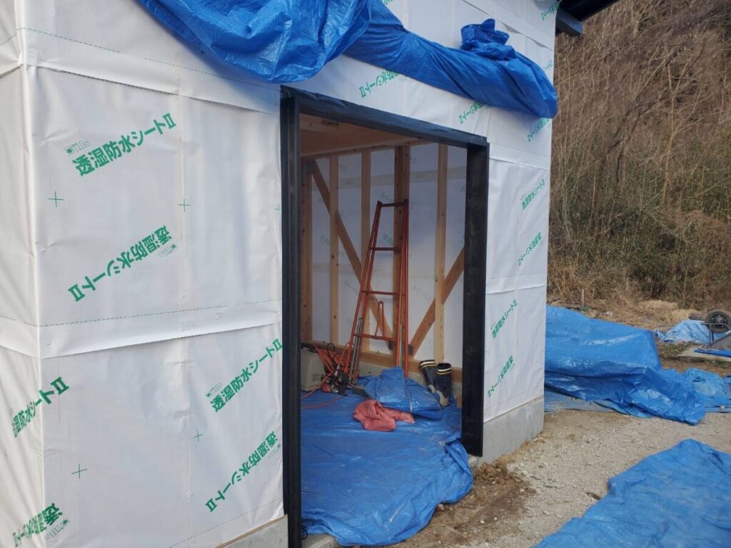 外部では透湿防水シートの施工を行いました。