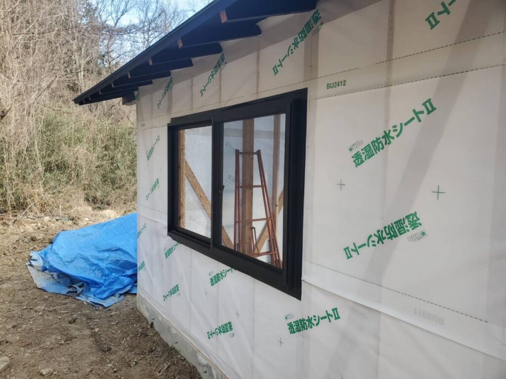 窓の取り付けも完了し、外観の形がはっきりしてきました。