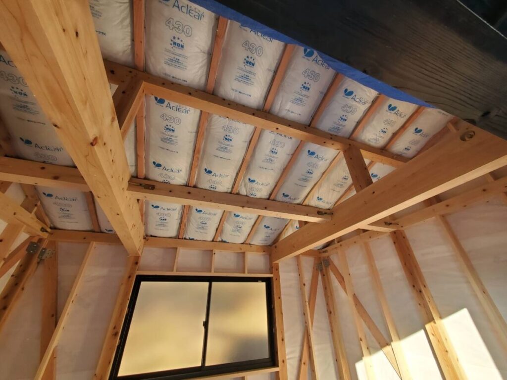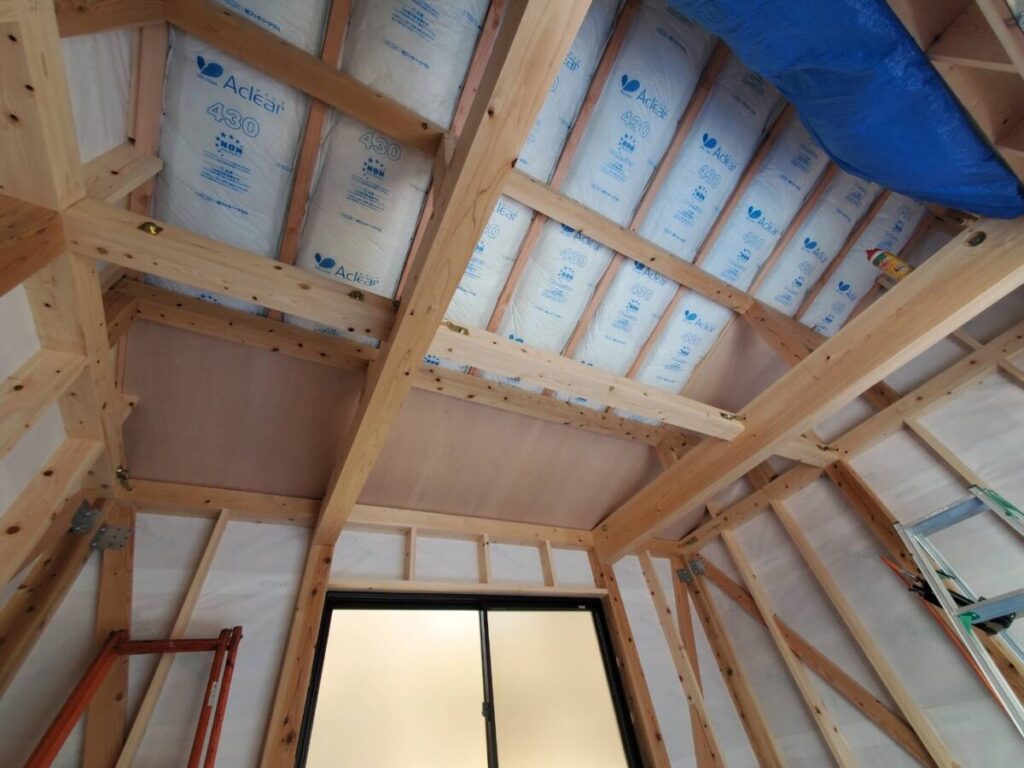 内部では間柱が入り、天井部分には断熱材を施工しました。