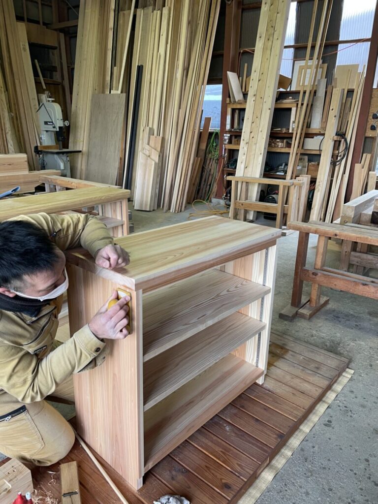 今回のキャビネットも、素材選びから加工、仕上げまで大工のこだわりが詰まった造作家具となりました。